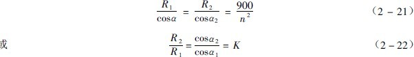 此處的K為內(nèi)層球半徑與外層球半徑之比,或內(nèi)層球的與外層球的脫離角的余弦之比。當(dāng)最外層球的半徑被看作即磨機(jī)的半徑時,它就是最內(nèi)層球的半徑與磨機(jī)內(nèi)半徑之比。顯然,K標(biāo)志裝球率,因?yàn)檠b球愈多,R2愈小,K 值也就較小。由公式(2-5)可知