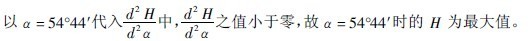 在拋落式工作的磨機(jī)中,磨礦作用主要來自鋼球落下時的動能。此動能的大小,與鋼球的落下高度(H)有關(guān),而鋼球的落下高度又決定于磨機(jī)的轉(zhuǎn)速。根據(jù)前面的論述,必然可從鋼球更大落下高度來決定磨機(jī)的合適轉(zhuǎn)速。照此理,將公式(2-29)取導(dǎo)數(shù),并令它等于零,就可以求出使鋼球有拋物落下高度時的脫離角,再從它找到相應(yīng)的轉(zhuǎn)速。