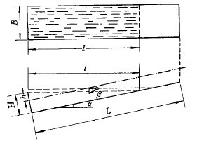 (b)分級機(jī)結(jié)構(gòu)———分級機(jī)中礦粒群沉降的液面面積,稱為分級面積。分級面積的大小影響分級機(jī)處理能力并決定分級粒度。由于分級過程是發(fā)生在靠近表面層的水平礦漿流中,如3-4-16所示。礦粒在這層水平流中,一方面以自身的沉降速度v向下沉降,同時又被水平介質(zhì)流帶動,以接近礦漿水平流速u的速度向溢流端行進(jìn)。因此,它的運(yùn)動方向是兩個速度的矢量和。粒度不同的兩個礦粒(假定密度和形狀相同)處于同一分級槽中,其水平流速一致,而兩礦粒沉降速度有別,于是合速度與水平面的夾角β也有差異。粗顆粒的β角大,運(yùn)行到分級槽終端被溢流堰擋住,故留在槽內(nèi)而成沉砂,細(xì)顆粒的β角小,運(yùn)行到分級槽終端時,依然位于溢流堰上面,隨水平流從溢流口排出機(jī)外。