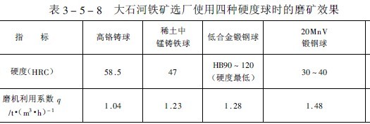 2)不同硬度鋼球之間磨機(jī)利用系數(shù)(即容積生產(chǎn)率)可相差20%~40%,說明硬度對(duì)磨機(jī)生產(chǎn)率的影響是相當(dāng)顯著的,單純追求高硬度低球耗而忽視生產(chǎn)率降低是不可取的。