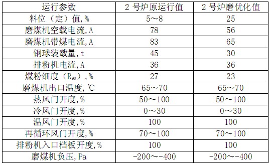 表1 制粉系統(tǒng)優(yōu)化運行參數(shù)