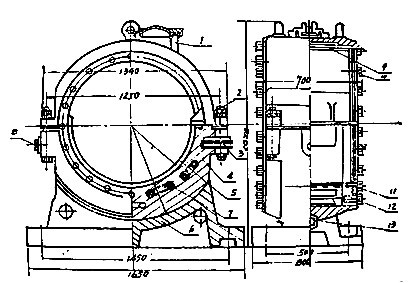 1、如圖1所示的中心傳動中心卸料端。它的卸料篦子1用螺栓5與磨頭2連結在一起,在卸料篦子與磨頭之間有葉板4,在葉板中間裝有卸料錐3,物料由卸料篦子1的孔排出后,被葉板4帶起,當物料被帶到上部時,便由葉板上滑下,經卸料錐3滑到軸頸內的截頭漏斗6內,后從中間接管7上的橢圓孔落到控制篩8上,篩8用螺釘固定到中間接管7的法蘭盤上,隨法蘭盤旋轉。9為卸料罩子,物料成品由罩子底部卸出,落入運輸機中,沒有通過篩子的粗粒物料,沿篩子滑下來從孔10卸出。
