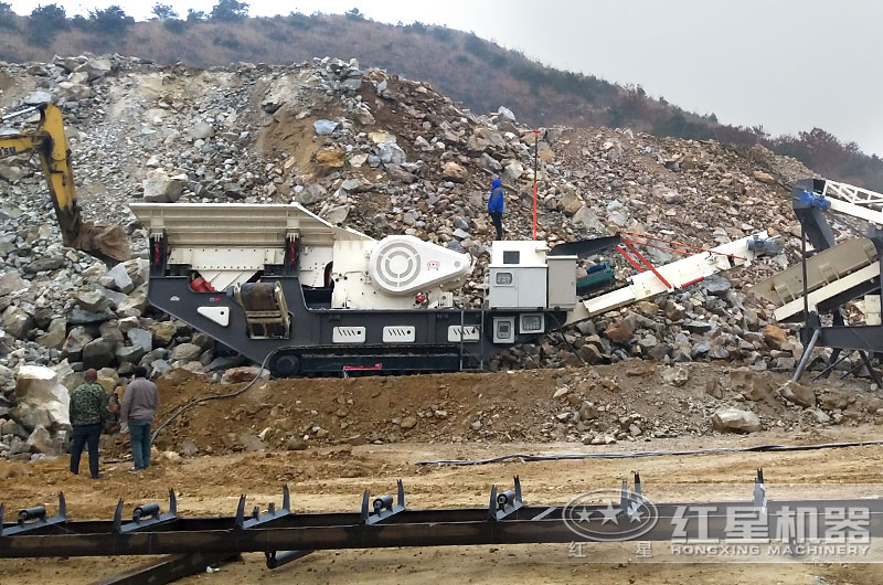 移動(dòng)式碎石機(jī)作業(yè)現(xiàn)場(chǎng)